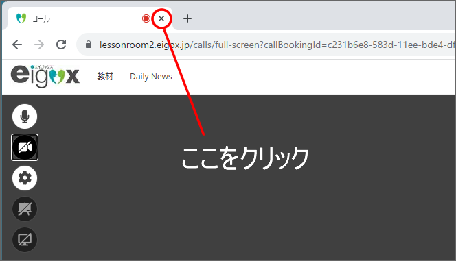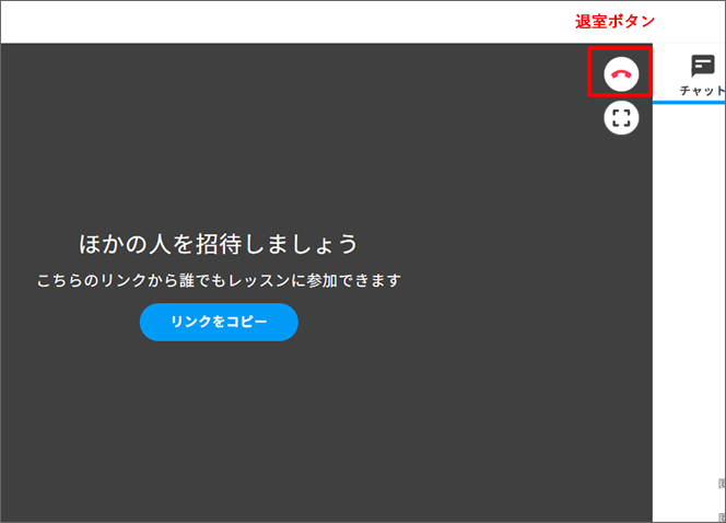 レッスンルームを途中退室して『レッスンルーム準備室』に戻りたい場合は、ブラウザのタブを閉じてください。
